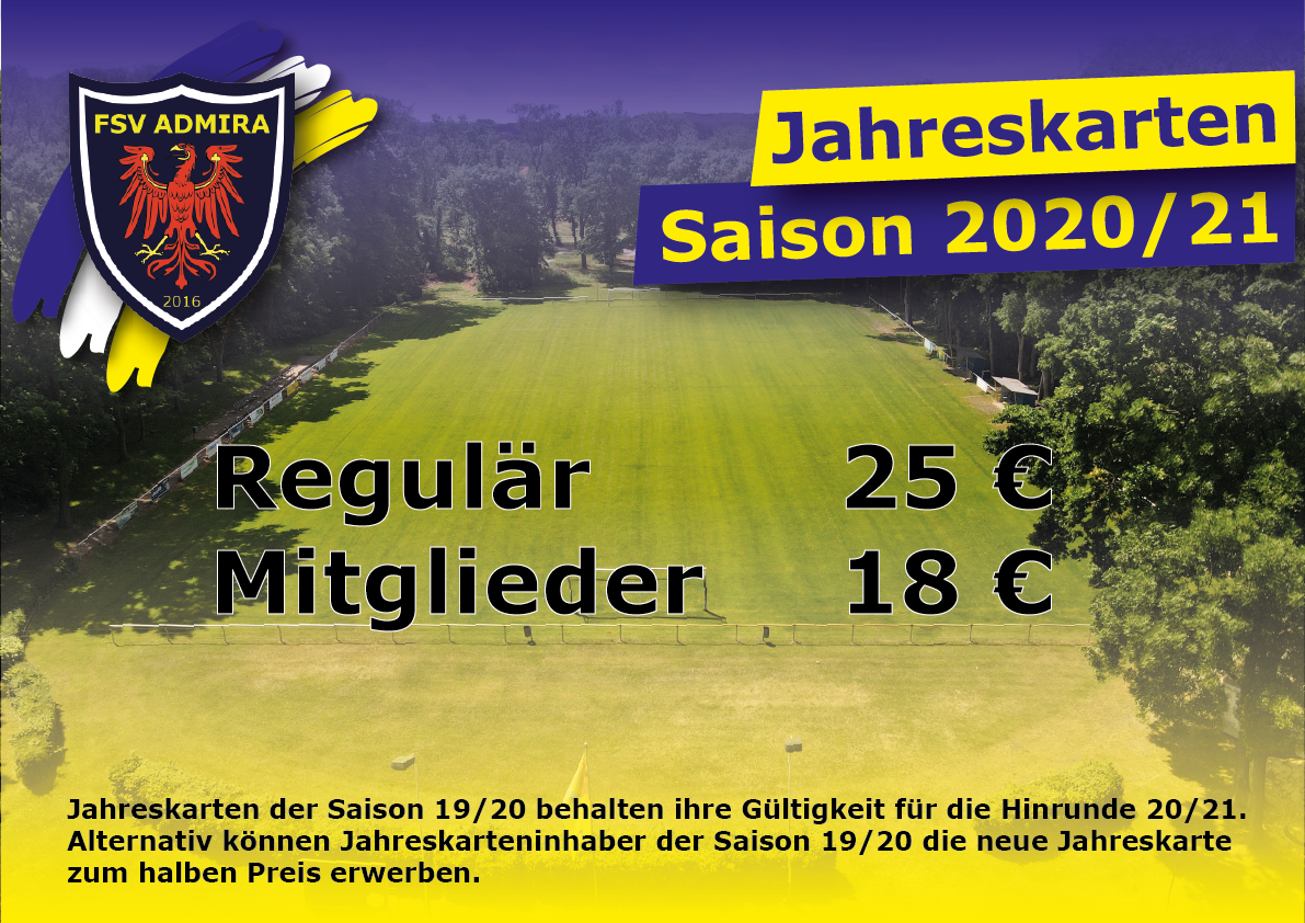 Ihr könnt die neuen Dauerkarten ab sofort per Mail an verwaltung@fsv-admira.de bestellen.