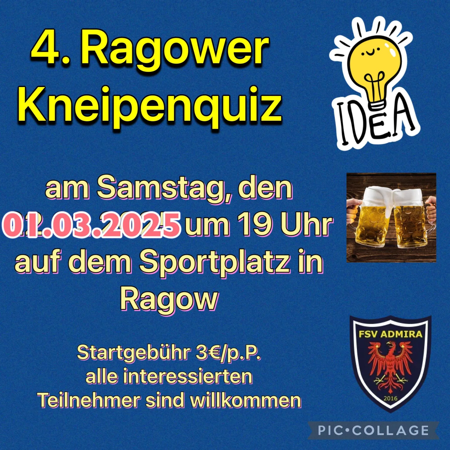 Am Samstag, den 01.03.25 startet um 19:00 Uhr das 4. Ragower Kneipenquiz in unserem Sporthaus.